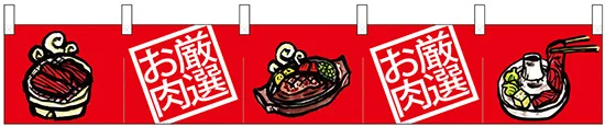 - 【新商品】カウンターのれん 68714 厳選お肉 ステーキイラスト (68714)