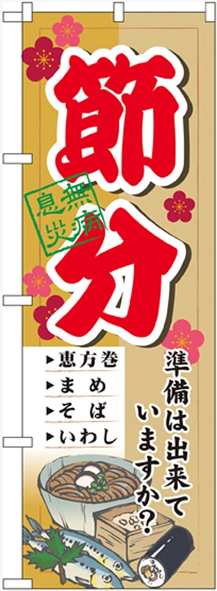 「のぼり旗 節分 (60566)」の導入をご検討中ですか? 大量注文・複数台のご検討に応じたお見積りのご相談、最短納期や送料、仕様・サイズの確認など、 恵方巻き のぼり旗選びをまとめてサポートいたします。