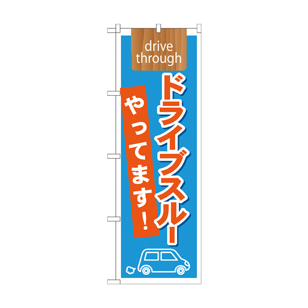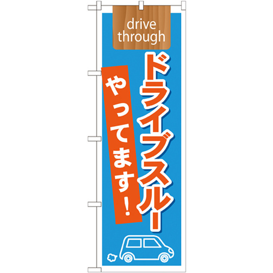 のぼり旗 表記:ドライブスルーやってます! 下段に車のイラスト (21340)