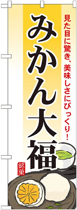 「のぼり旗 みかん大福 (7084)」の導入をご検討中ですか? 大量注文・複数台のご検討に応じたお見積りのご相談、最短納期や送料、仕様・サイズの確認など、 餅・大福 のぼり旗選びをまとめてサポートいたします。