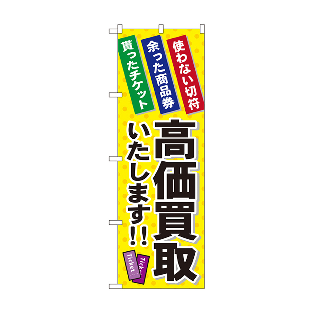 のぼり旗で、金券ショップ、チケット買取や質屋をPR! 金券ショップ向けのぼり旗シリーズ