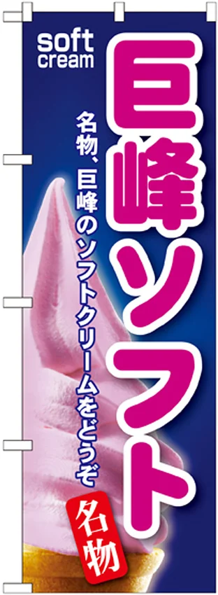 「のぼり旗 巨峰ソフト (SNB-123)」の導入をご検討中ですか? 大量注文・複数台のご検討に応じたお見積りのご相談、最短納期や送料、仕様・サイズの確認など、 アイス・ソフトクリーム のぼり旗選びをまとめてサポートいたします。