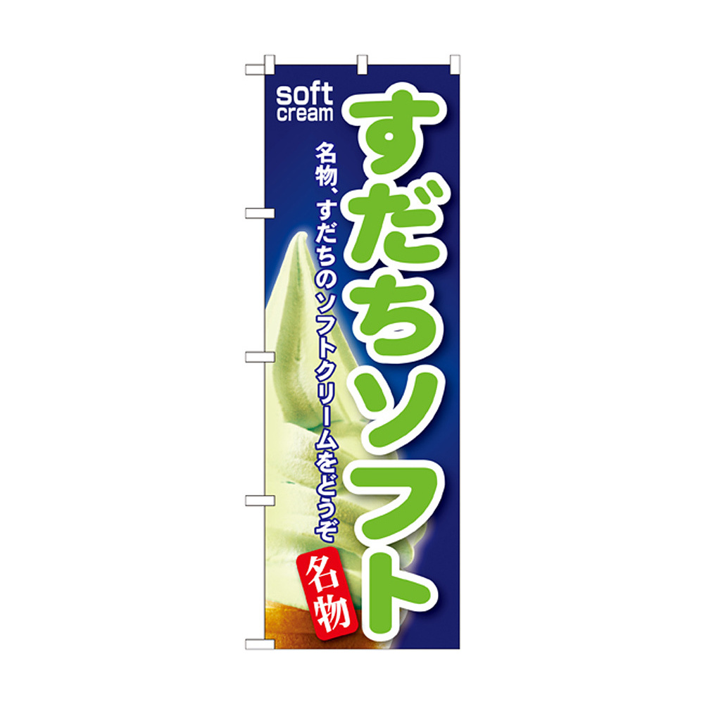 「のぼり旗 すだちソフト (SNB-126)」の導入をご検討中ですか? 大量注文・複数台のご検討に応じたお見積りのご相談、最短納期や送料、仕様・サイズの確認など、 アイス・ソフトクリーム のぼり旗選びをまとめてサポートいたします。