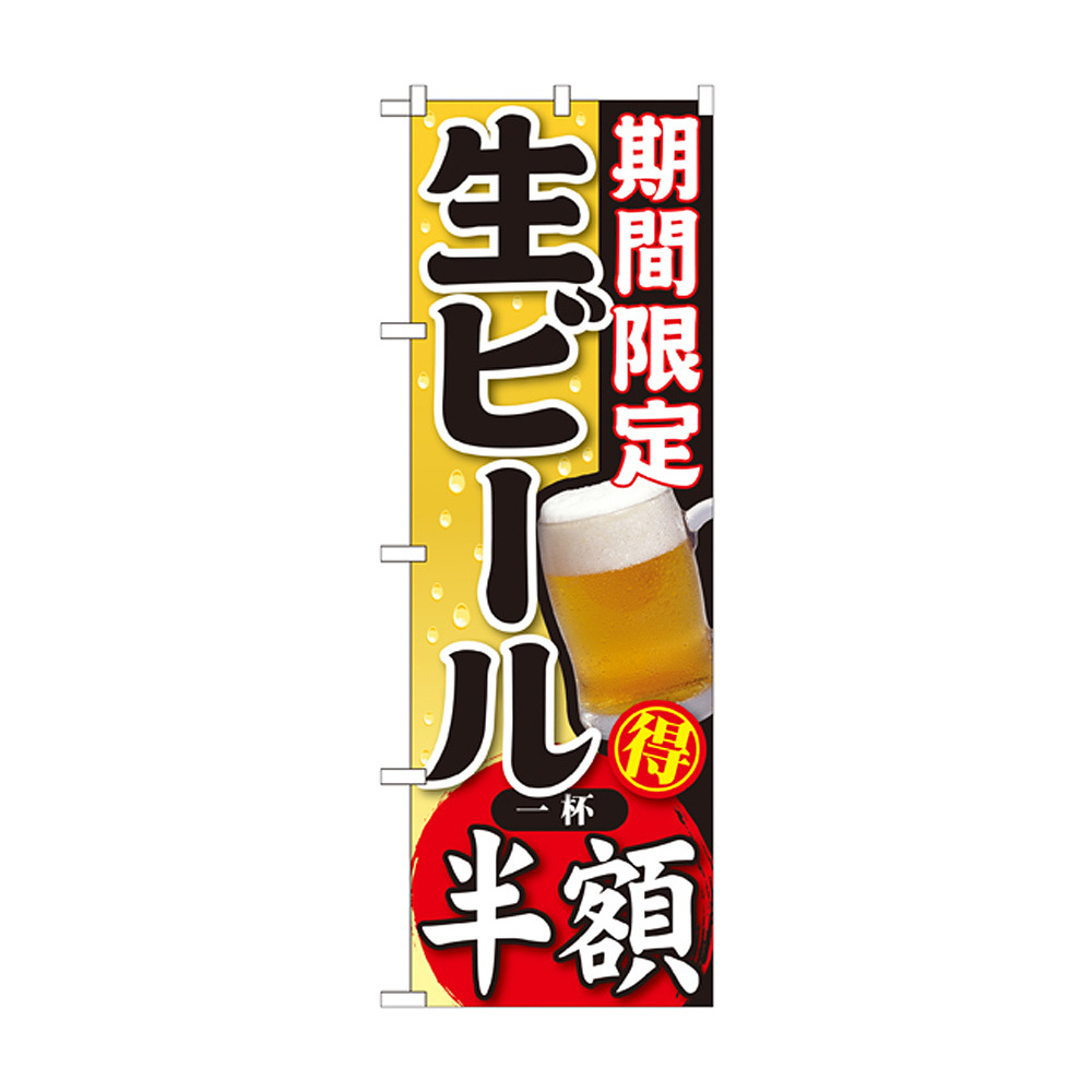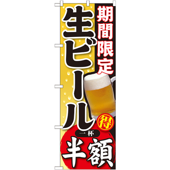 商品説明:のぼり旗 期間限定 生ビール 内容:半額 (SNB-179)