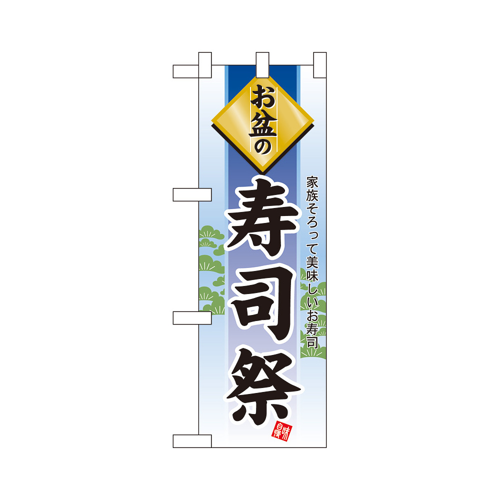 商品説明:ハーフのぼり旗 お盆の寿司祭 (60231)