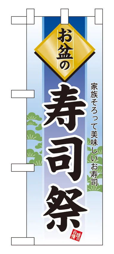 ハーフのぼり旗 お盆の寿司祭 (60231) の商品詳細