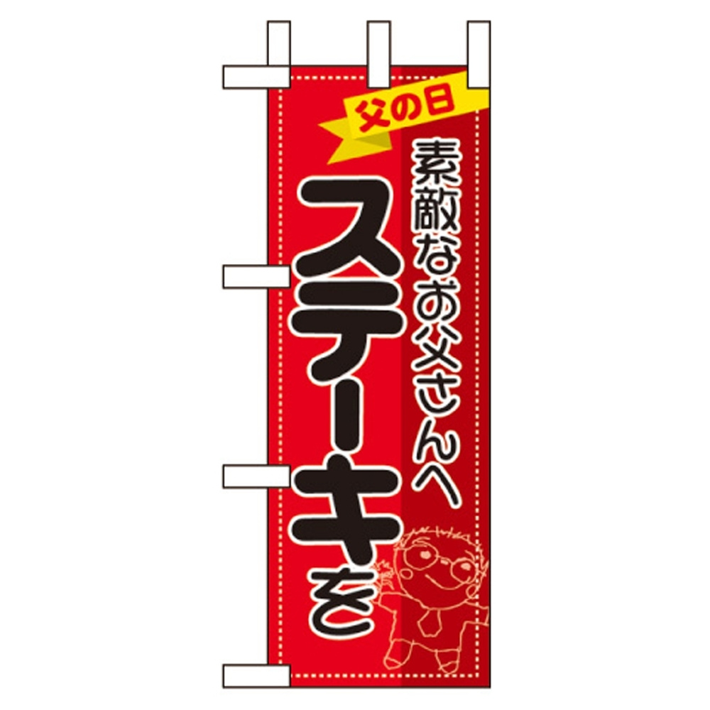 ミニのぼり旗 W100×H280mm 父の日 お父さんへステーキを (60138)