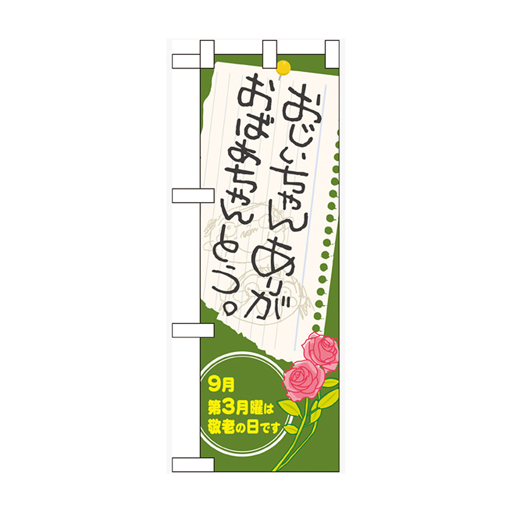商品説明:ハーフのぼり旗 おじいちゃんおばあちゃんありがとう (60338)