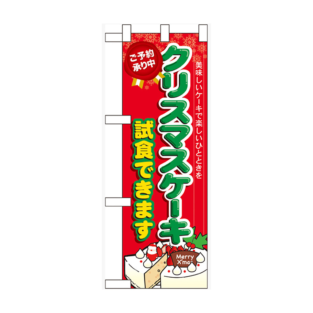 商品説明:ハーフのぼり旗 クリスマスケーキ試食できます (60640)
