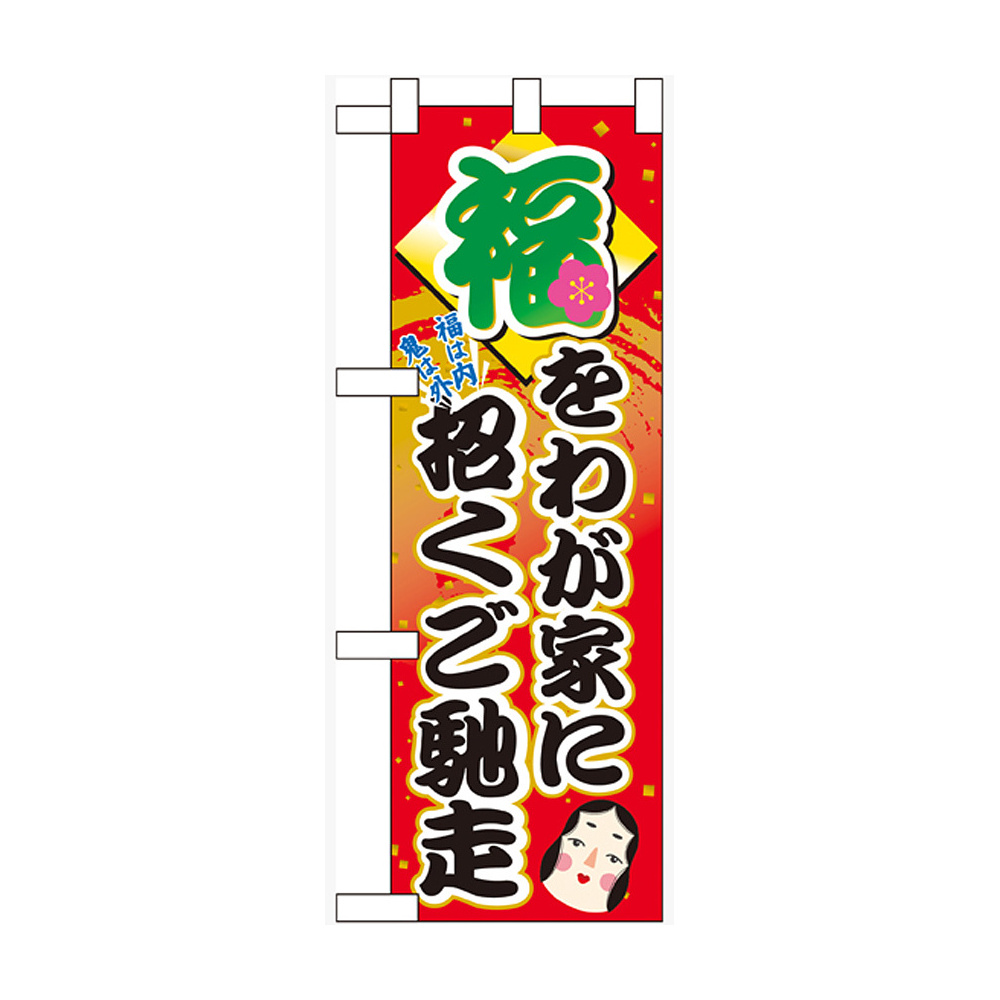 商品説明:ハーフのぼり旗 福をわが家に招くご馳走 (60553)