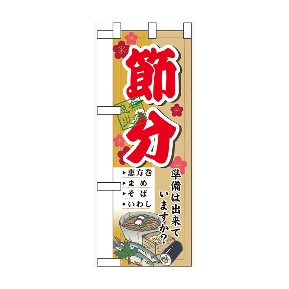 「ハーフのぼり旗 節分 (60567)」の導入をご検討中ですか? 大量注文・複数台のご検討に応じたお見積りのご相談、最短納期や送料、仕様・サイズの確認など、 イベント・祭り ハーフのぼり旗選びをまとめてサポートいたします。