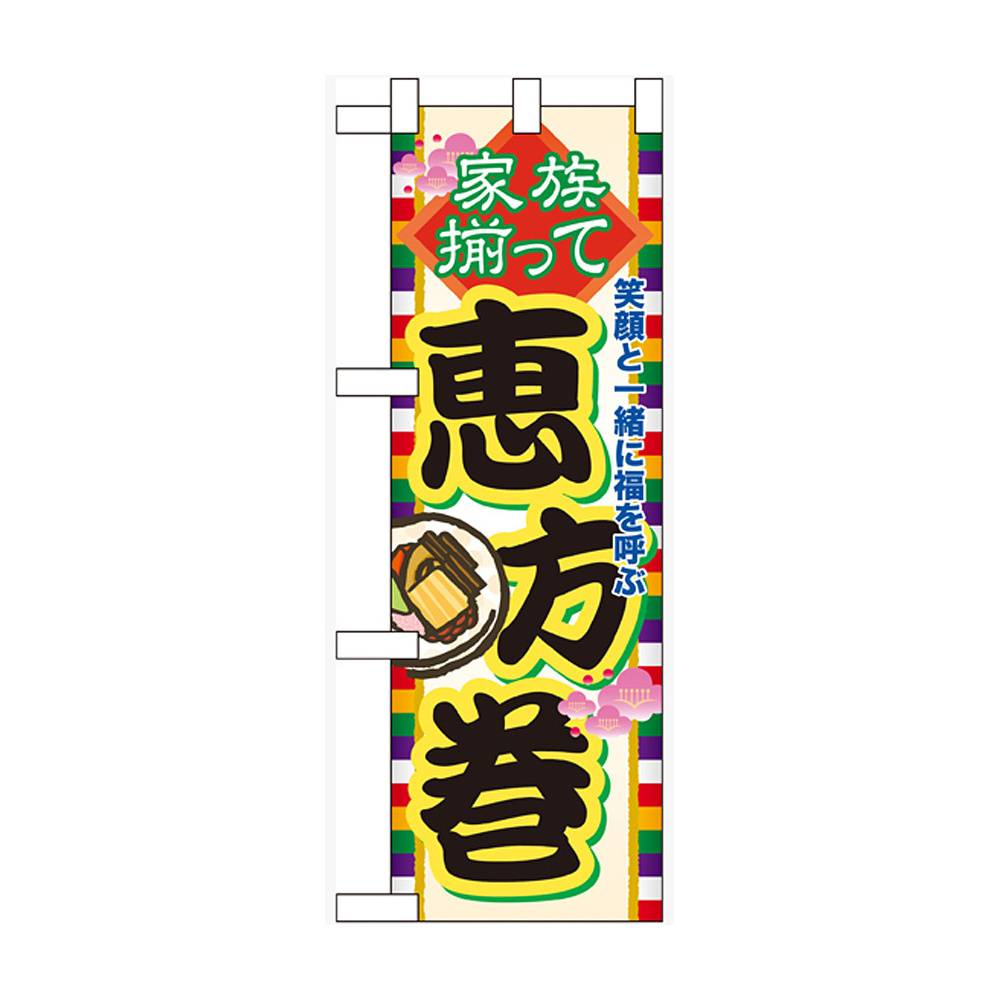 「ハーフのぼり旗 家族そろって恵方巻 (60572)」の導入をご検討中ですか? 大量注文・複数台のご検討に応じたお見積りのご相談、最短納期や送料、仕様・サイズの確認など、 食料品 ハーフのぼり旗選びをまとめてサポートいたします。