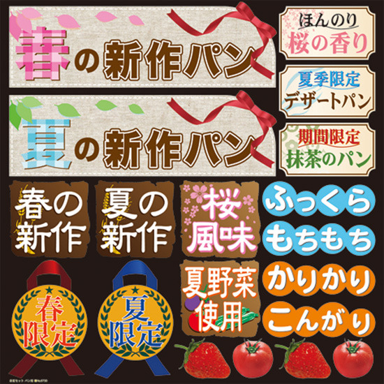 - 春夏セット パン用 看板・ボード用イラストシール (W285×H285mm)