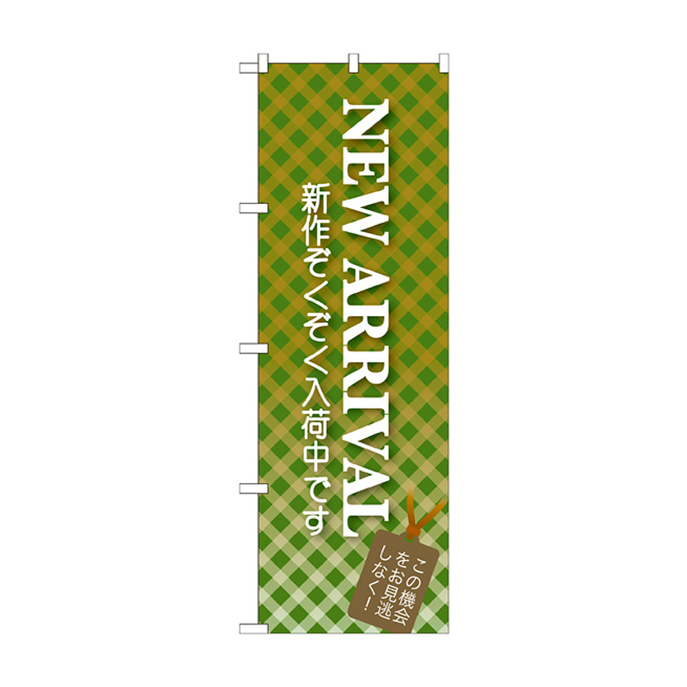 商品説明:のぼり旗 NEW ARRIVAL グリーン (GNB-723)