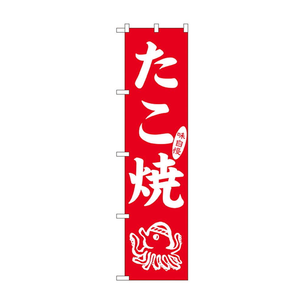 商品説明:スマートのぼり旗 味自慢 たこ焼 タコイラスト 赤地/白文字 (22168)