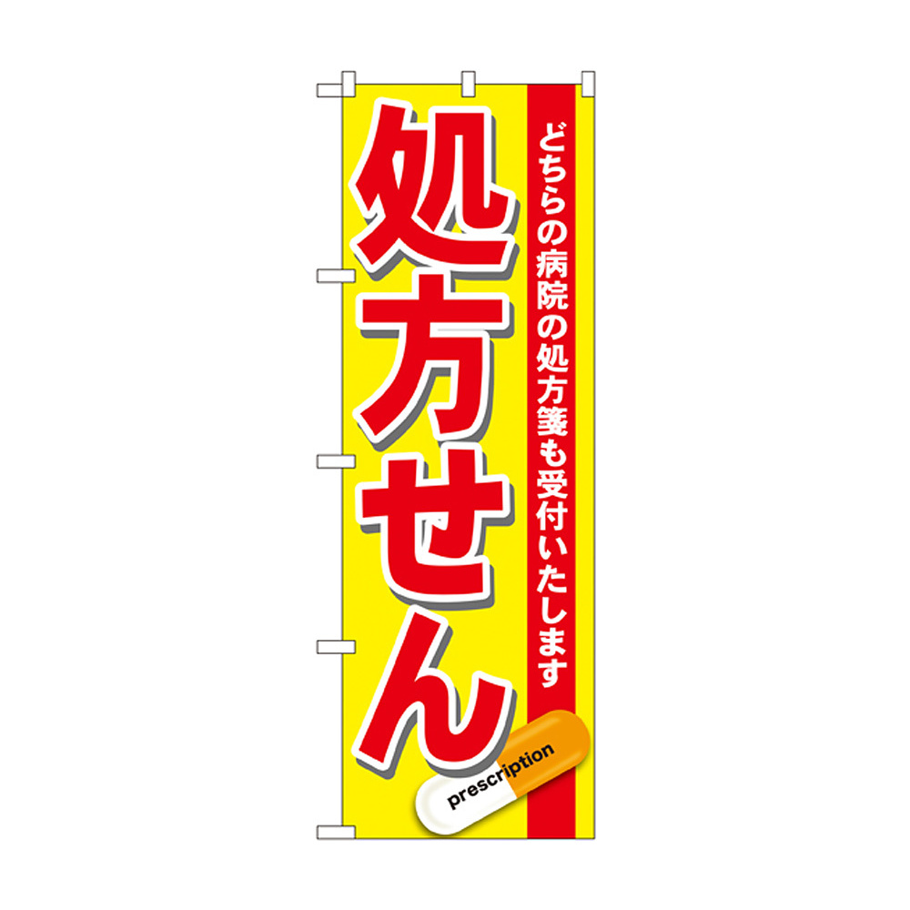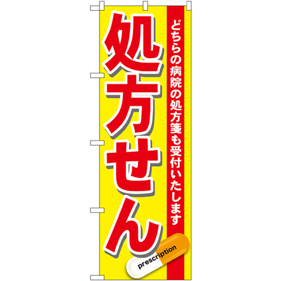 商品説明:のぼり旗 処方せん どちらの病院の処方箋も受付けいたします 赤 (GNB-137)