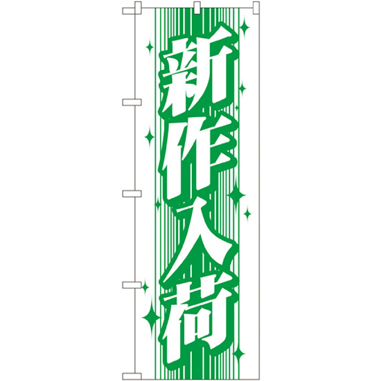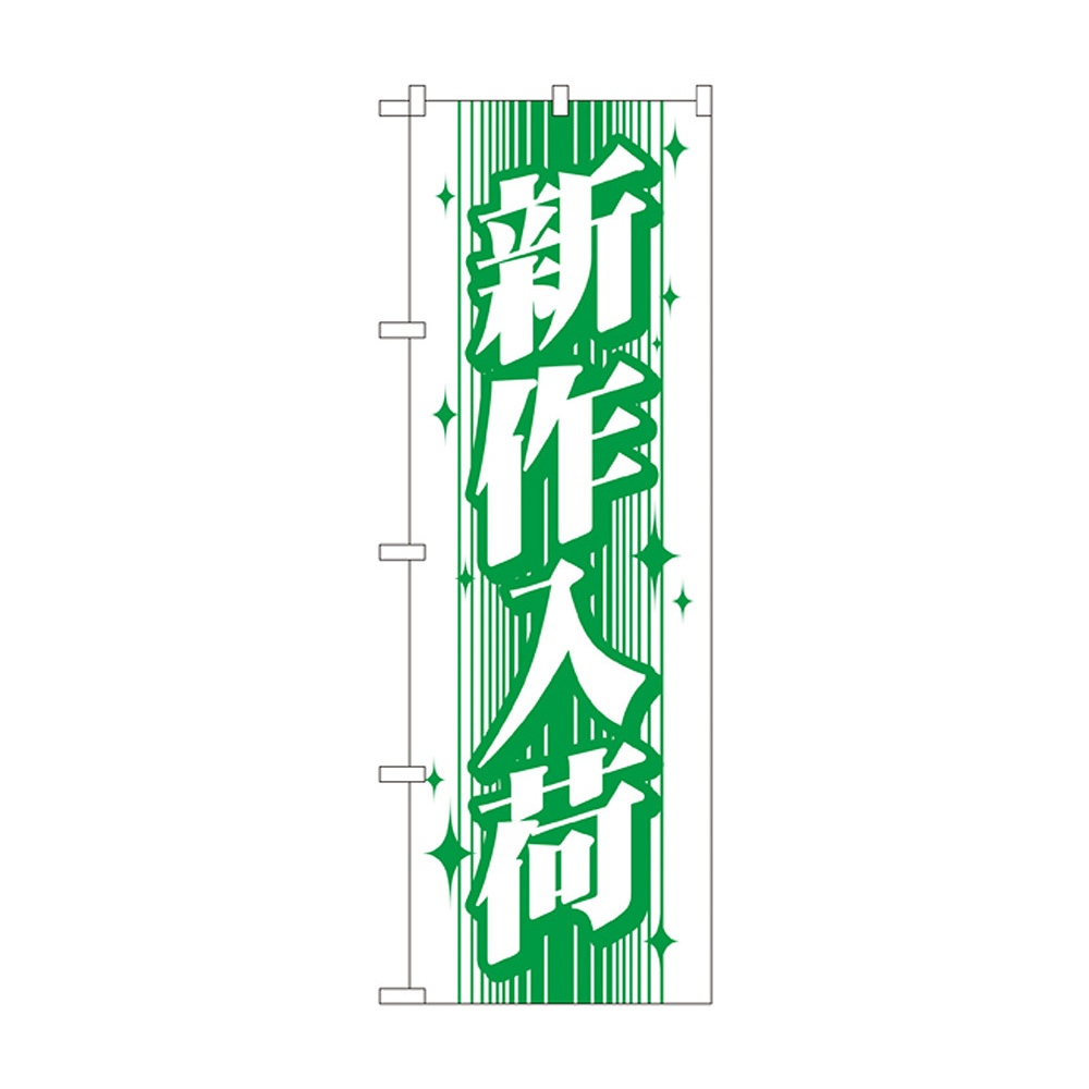 商品説明:のぼり旗 新作入荷 緑のストライプに白字(GNB-115)