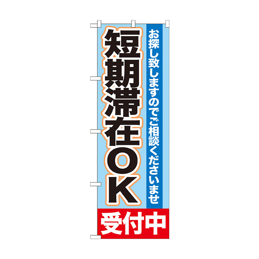商品説明:のぼり旗 短期滞在OK (GNB-1432)