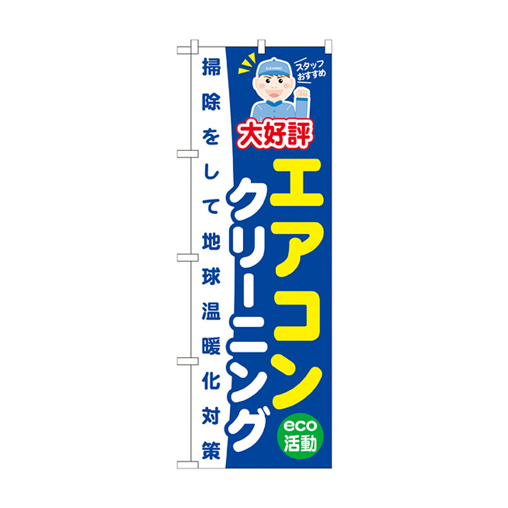 商品説明:のぼり旗 エアコンクリーニング 掃除して地球温暖化対策 (GNB-496)