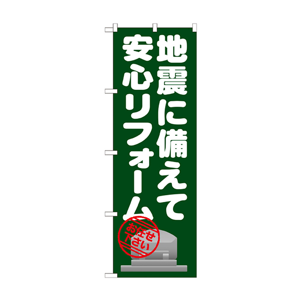 商品説明:のぼり旗 地震に備えて安心リフォーム (GNB-1633)