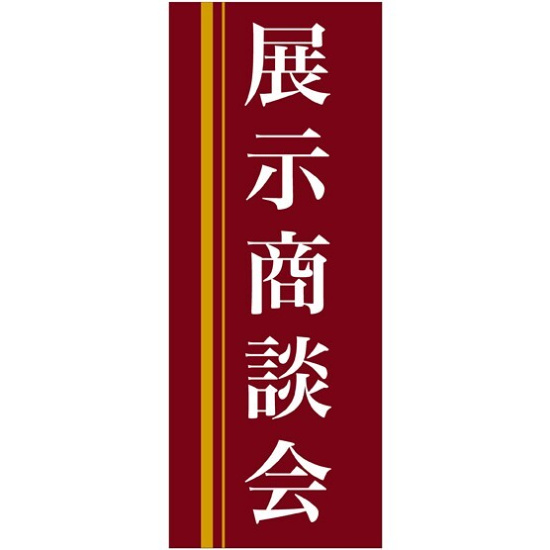 商品説明:企業向けバナー 展示商談会 エンジ(黄色ライン)背景 素材:ポンジ(薄手生地) (61568)