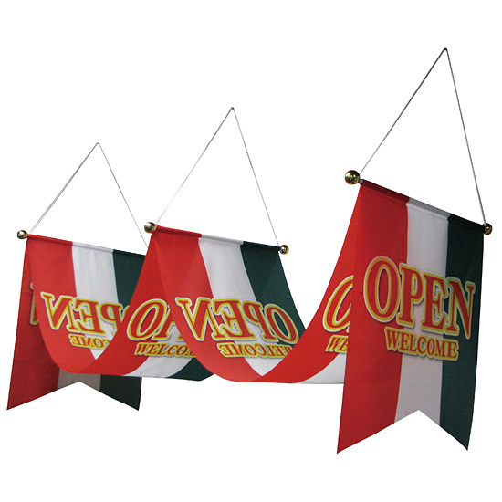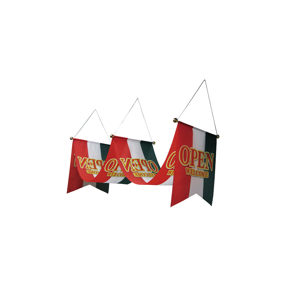 商品説明:ウェーブペナント OPEN 緑白赤 W450×H500×L3000 (63111)
