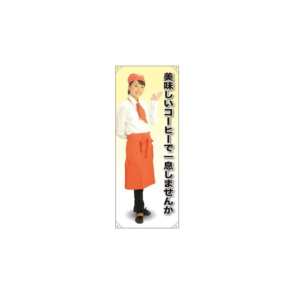 等身大バナー カフェ 美味しいコーヒーで一息しませんか 素材:トロマット(厚手生地) (61618)