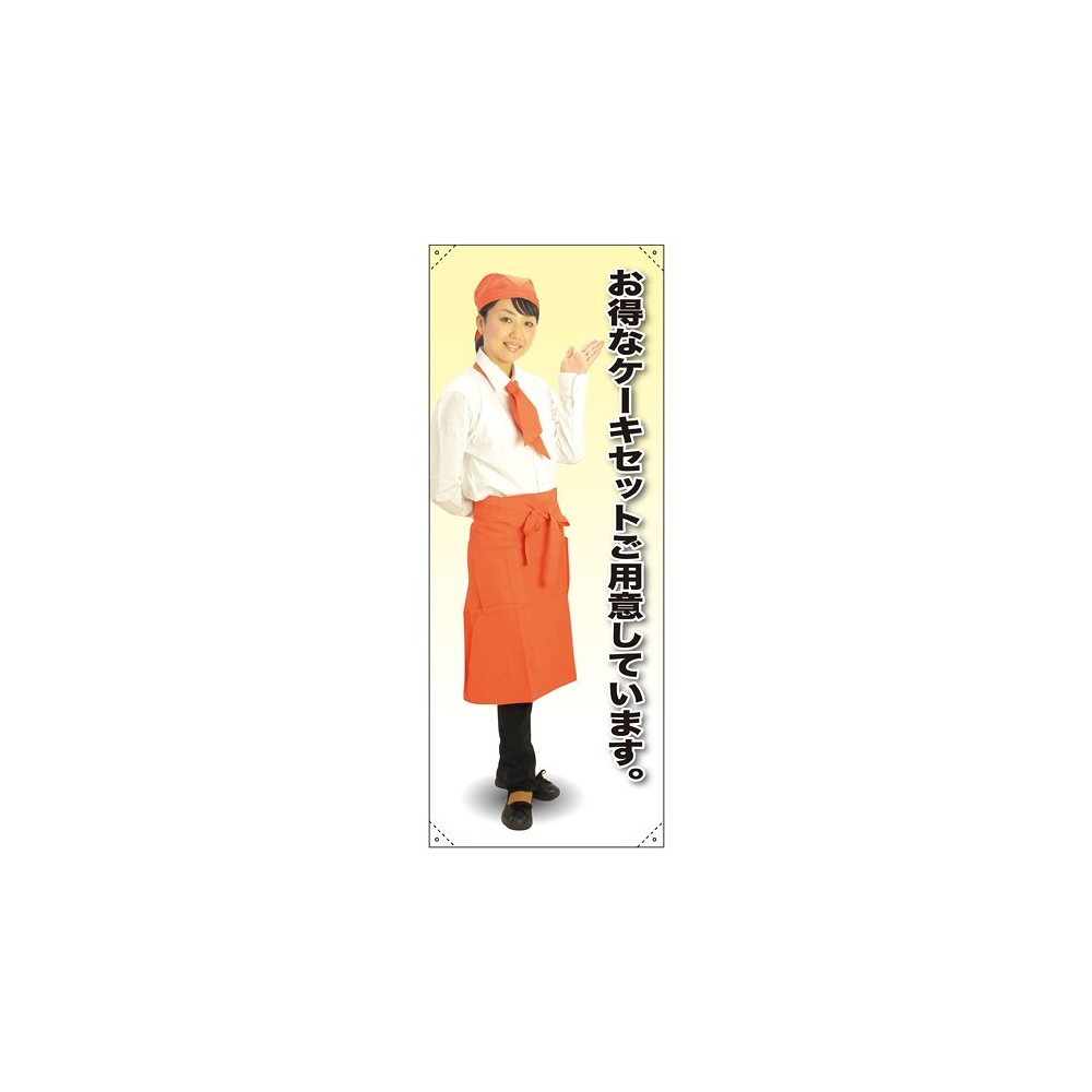 等身大バナー カフェ お得なケーキセットご用意しています。 素材:トロマット(厚手生地) (61625)