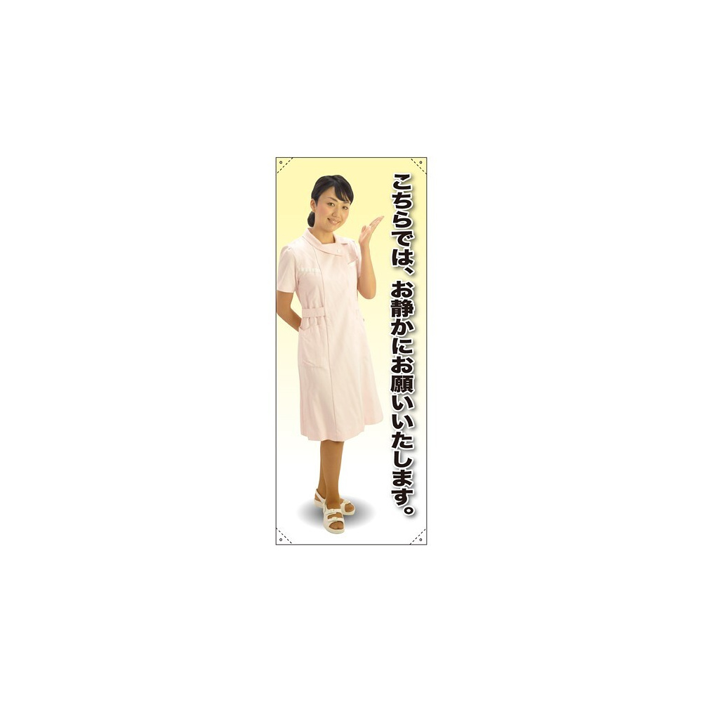 等身大バナー 白衣 こちらでは、お静かにお願いいたします。 素材:トロマット(厚手生地) (61637)