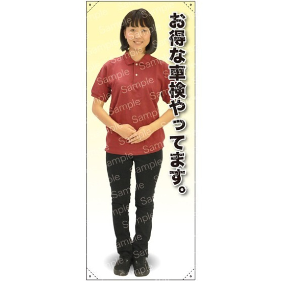 等身大バナー ポロシャツ お得な車検やってます。 素材:トロマット(厚手生地) (61681)