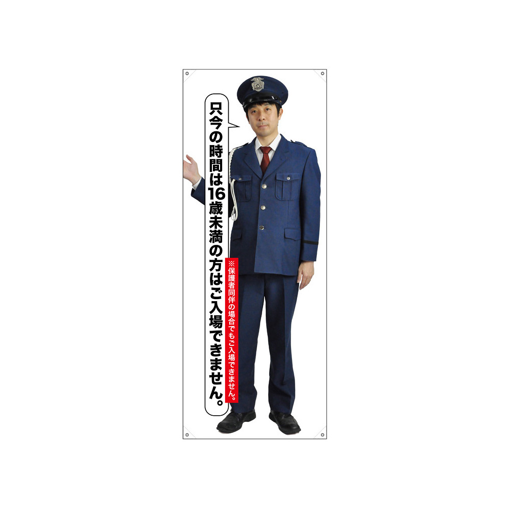 商品説明:等身大バナー 只今の時間は16歳未満の方はご入場できません。 (受注生産品) 素材:トロマット(厚手生地) (67904)