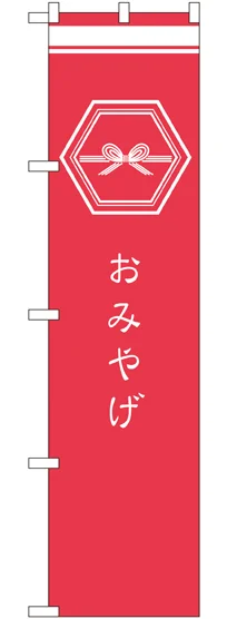 シンプルなデザインと鮮やかなピンク色が目を引く「おみやげ」ののぼり旗です。 土産物店にはもちろん、ホテルや旅館などのコーナーの1角においても アイキャッチ抜群です!