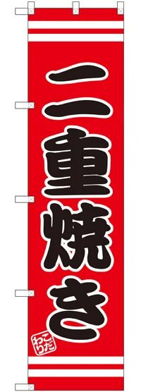 店舗やお店を盛り上げるのぼり旗。表示内容は、二重焼きです。