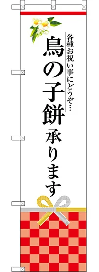 店舗やお店を盛り上げるのぼり旗。表示内容は、鳥の子餅承りますです。