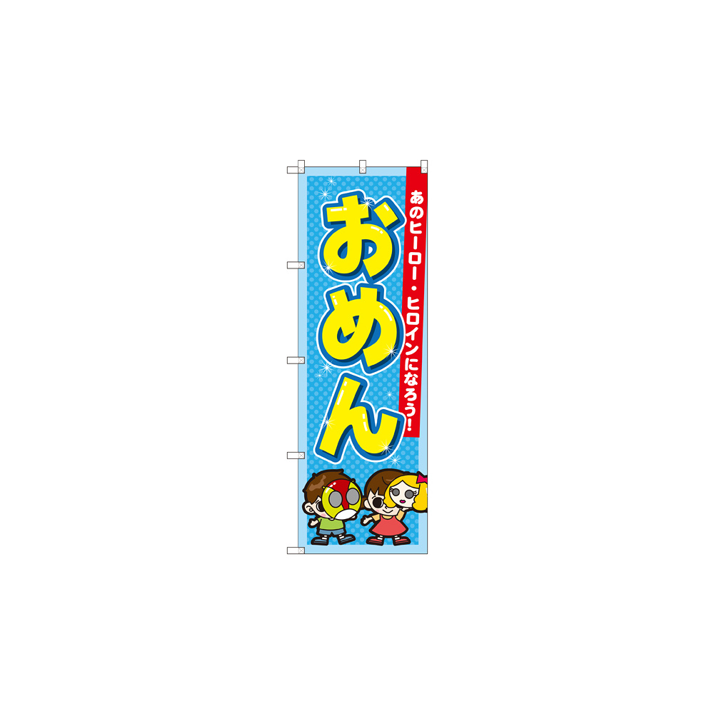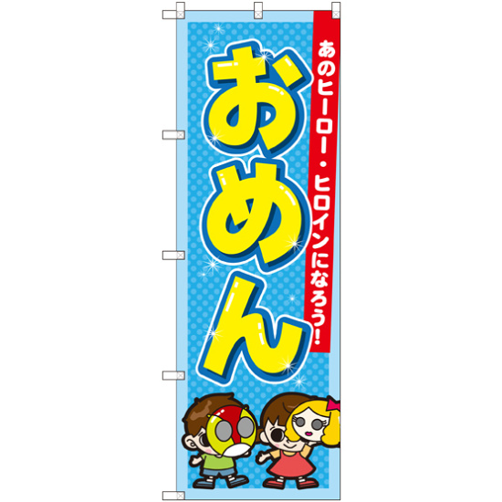 店舗やお店を盛り上げるのぼり旗。表示内容は、おめんです。
