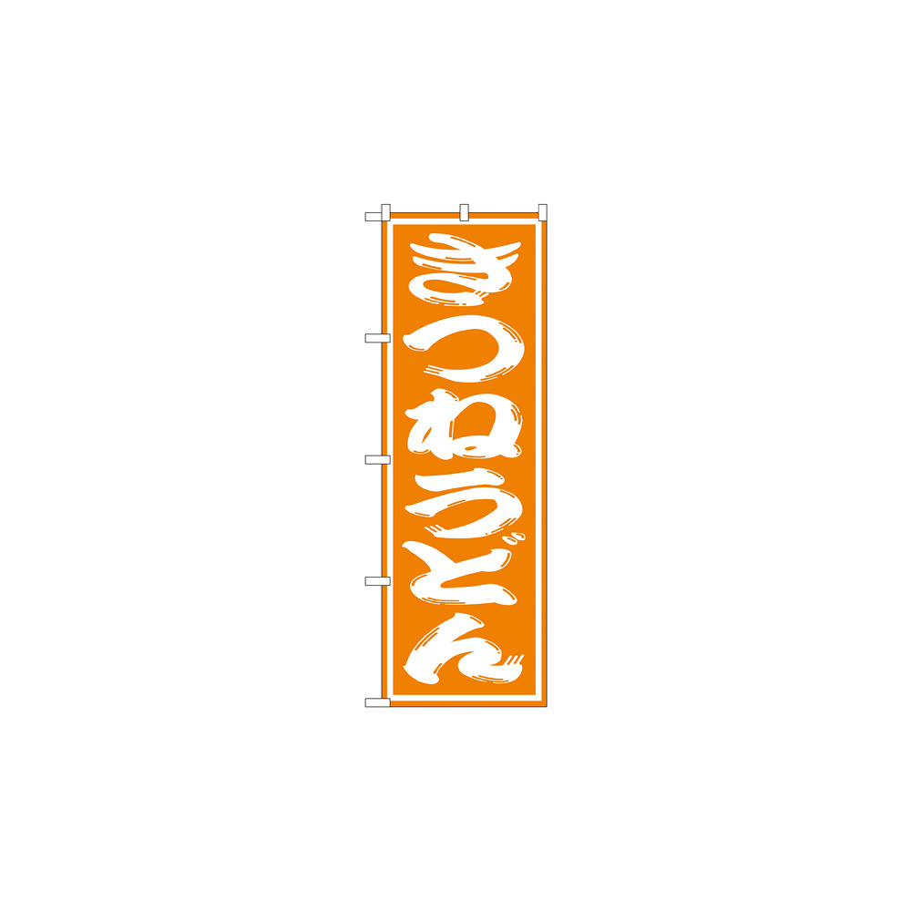 店舗やお店を盛り上げるのぼり旗。表示内容は、きつねうどんです。