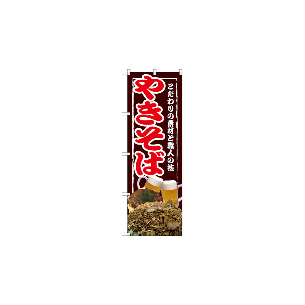 店舗やお店を盛り上げるのぼり旗。表示内容は、やきそばです。