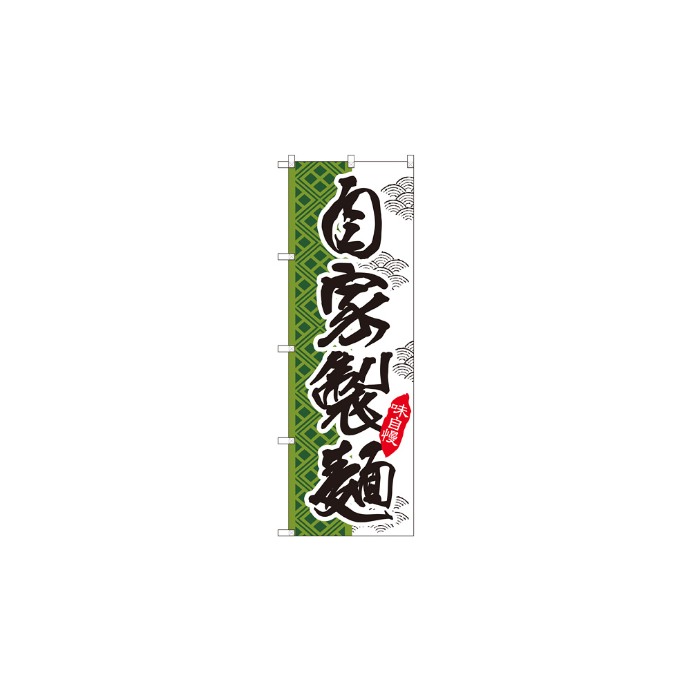 店舗やお店を盛り上げるのぼり旗。表示内容は、自家製麺です。