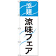 店舗やお店を盛り上げるのぼり旗。表示内容は、涼麺 涼味フェアです。
