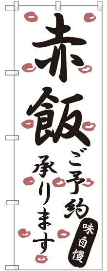 店舗やお店を盛り上げるのぼり旗。表示内容は、赤飯ご予約承りますです。