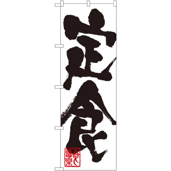 - のぼり旗 定食 白地 黒文字(SNB-1169)