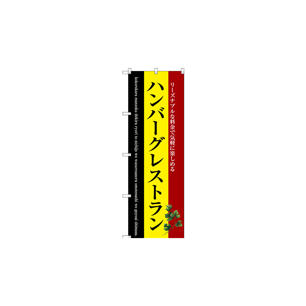 店舗やお店を盛り上げるのぼり旗。表示内容は、ハンバーグレストランです。