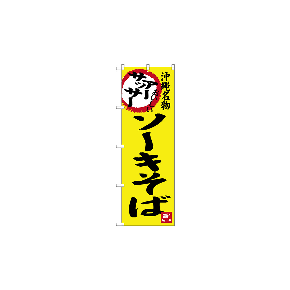 商品説明:のぼり旗 ソーキそば 沖縄名物 黄色地/黒文字 (SNB-3591)