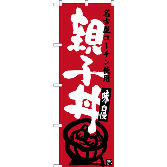 店舗やお店を盛り上げるのぼり旗。表示内容は、親子丼 名古屋名物 (エンジ)です。