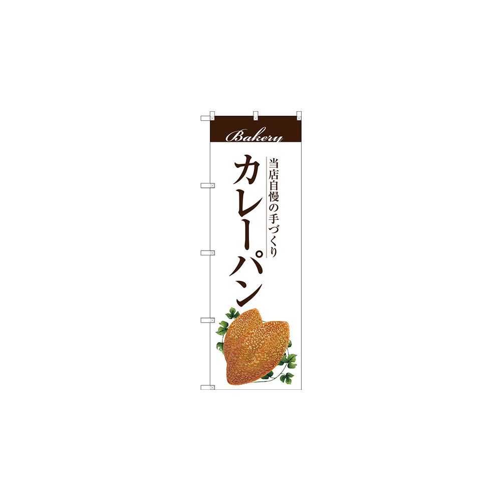 商品説明:のぼり旗 カレーパン 当店自慢の手づくり イラスト 白地 (SNB-2892)