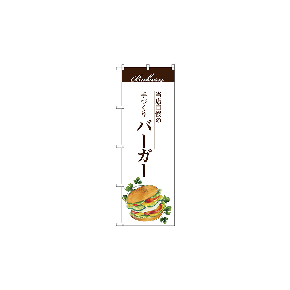 店舗やお店を盛り上げるのぼり旗。表示内容は、バーガーです。