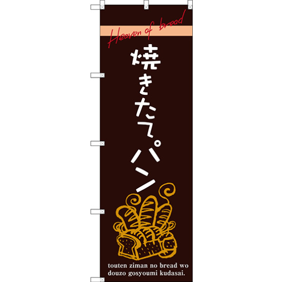 のぼり旗 焼きたてパン 茶地 下段にパンのイラスト(SNB-2926)
