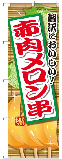 店舗やお店を盛り上げるのぼり旗。表示内容は、赤肉メロン串です。