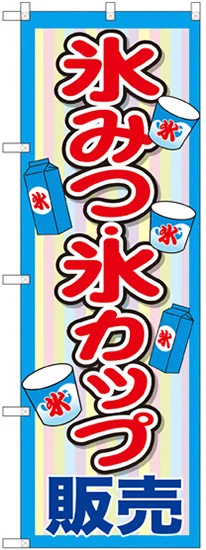 店舗やお店を盛り上げるのぼり旗。表示内容は、氷みつ・氷カップ販売です。