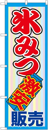 店舗やお店を盛り上げるのぼり旗。表示内容は、氷みつ激安販売です。
